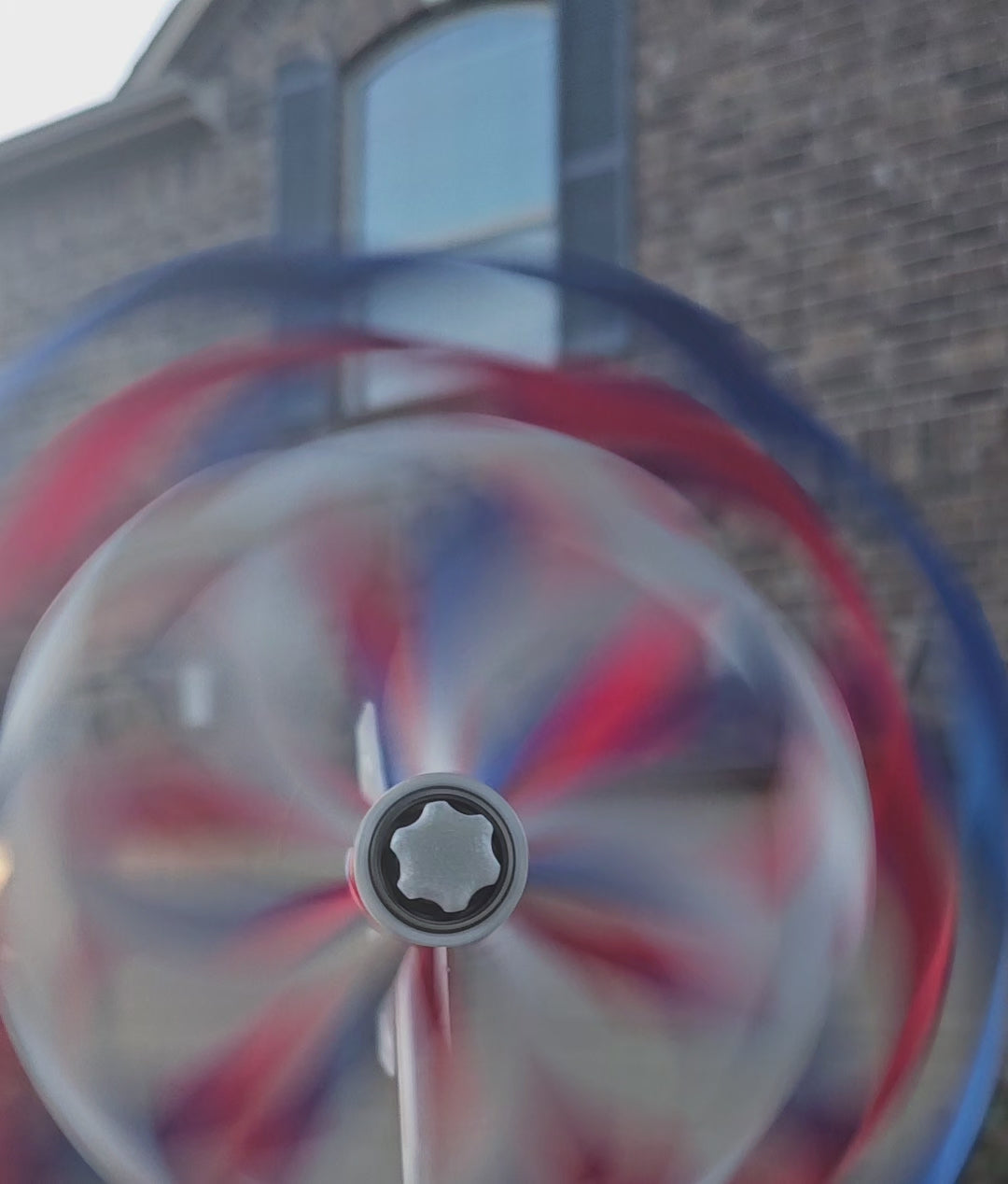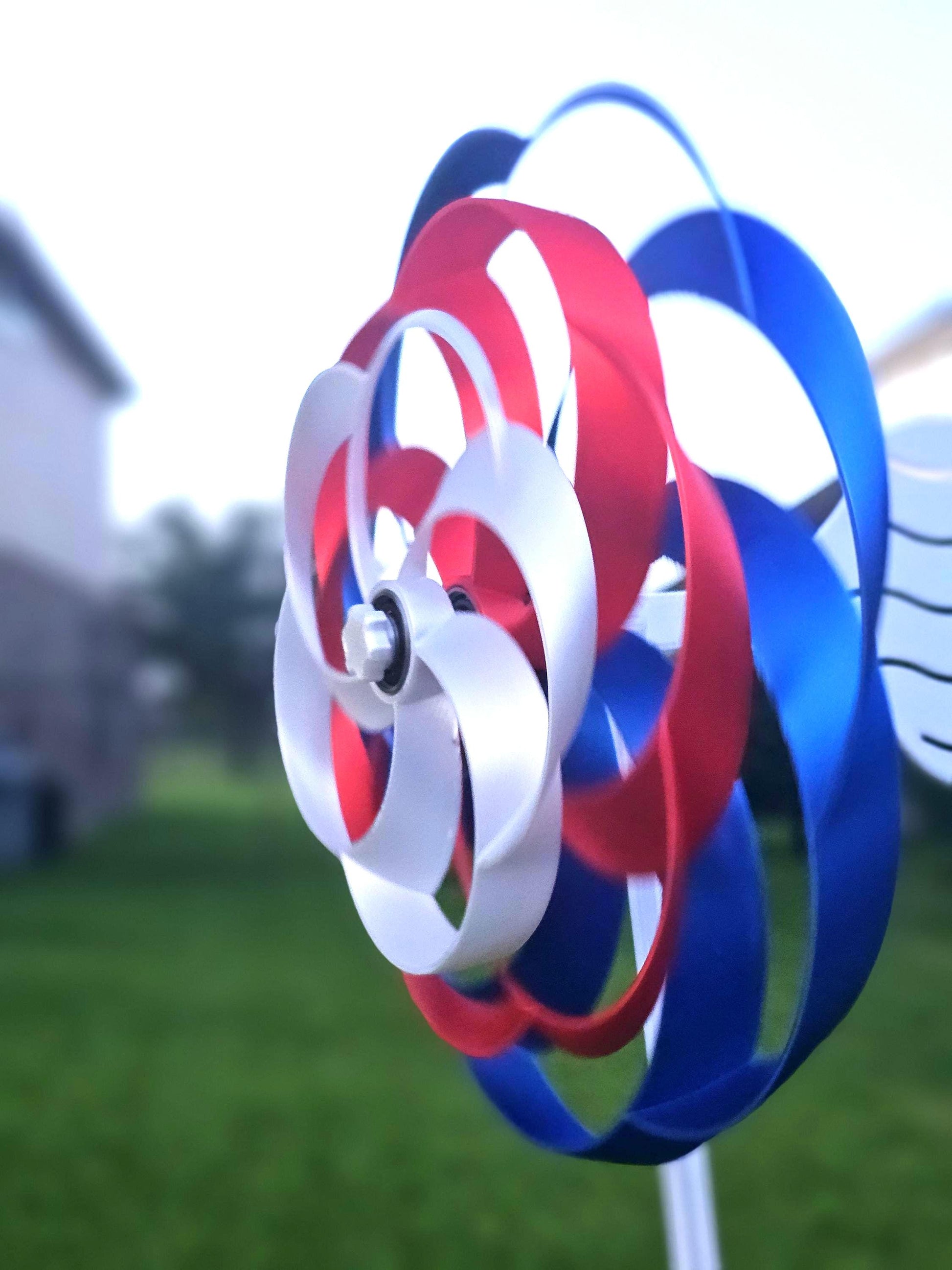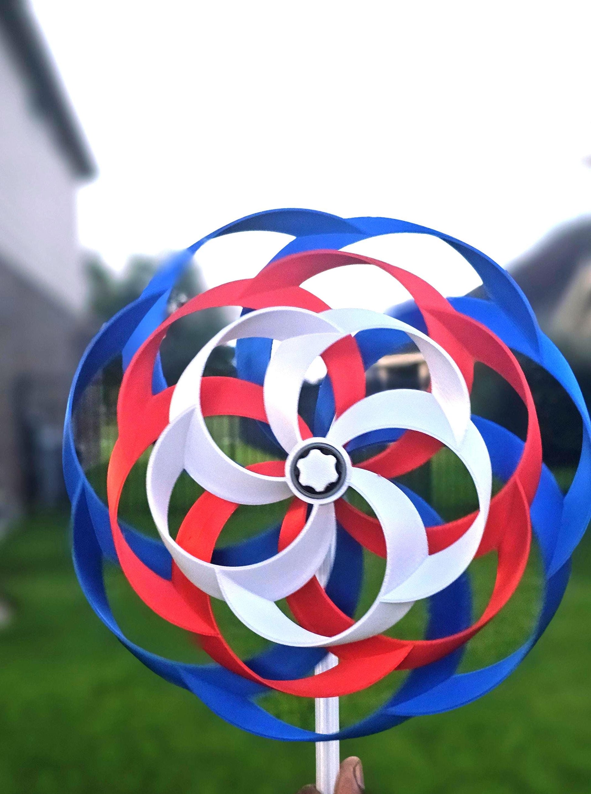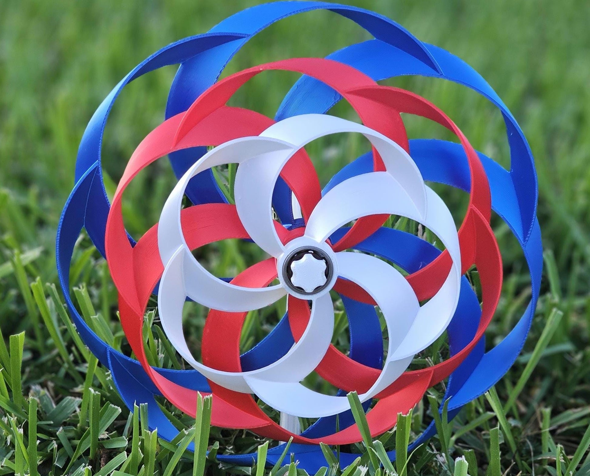 Add a pop of patriotic pride to your garden or front yard with this vibrant red, white & blue spinner.